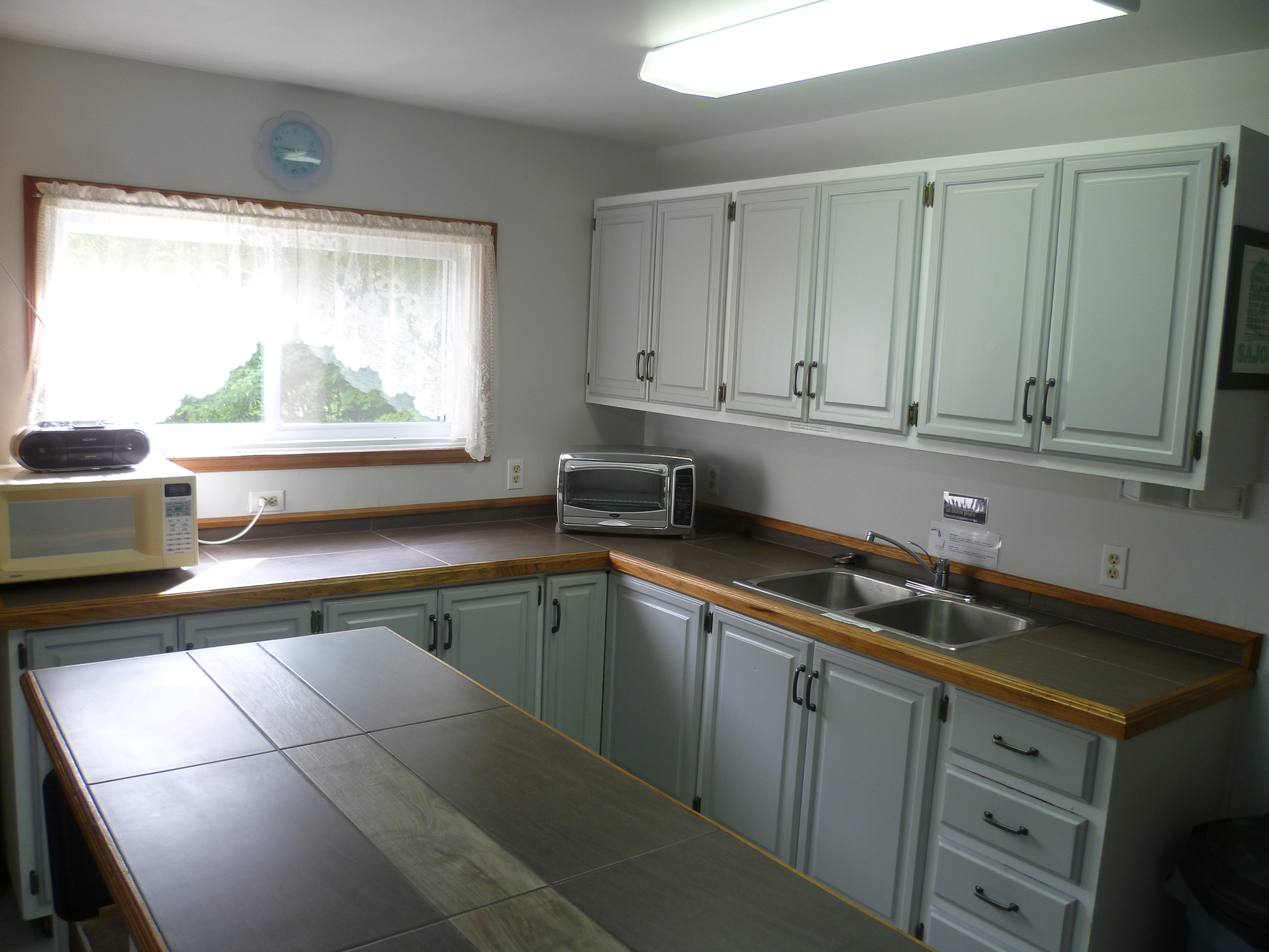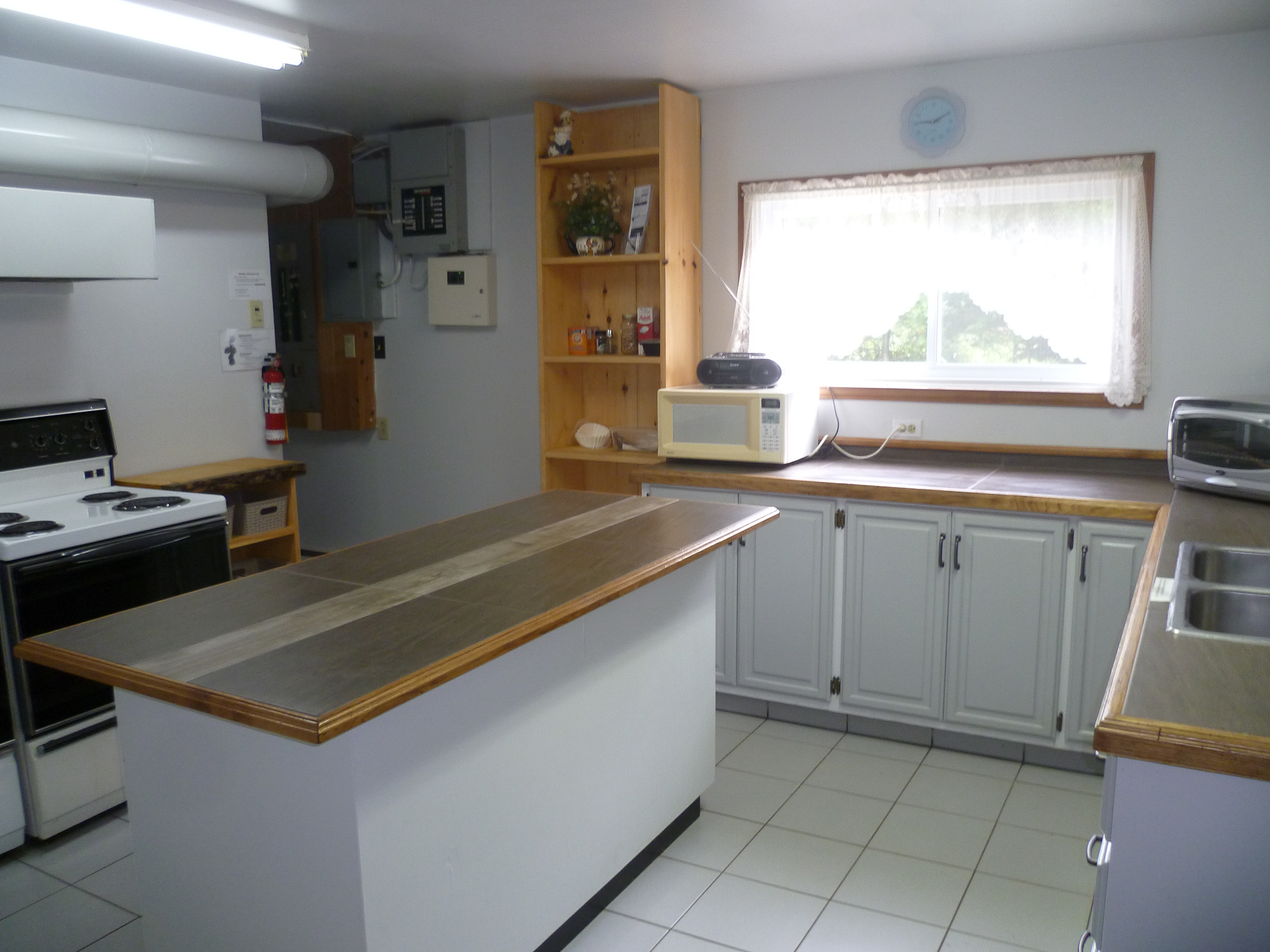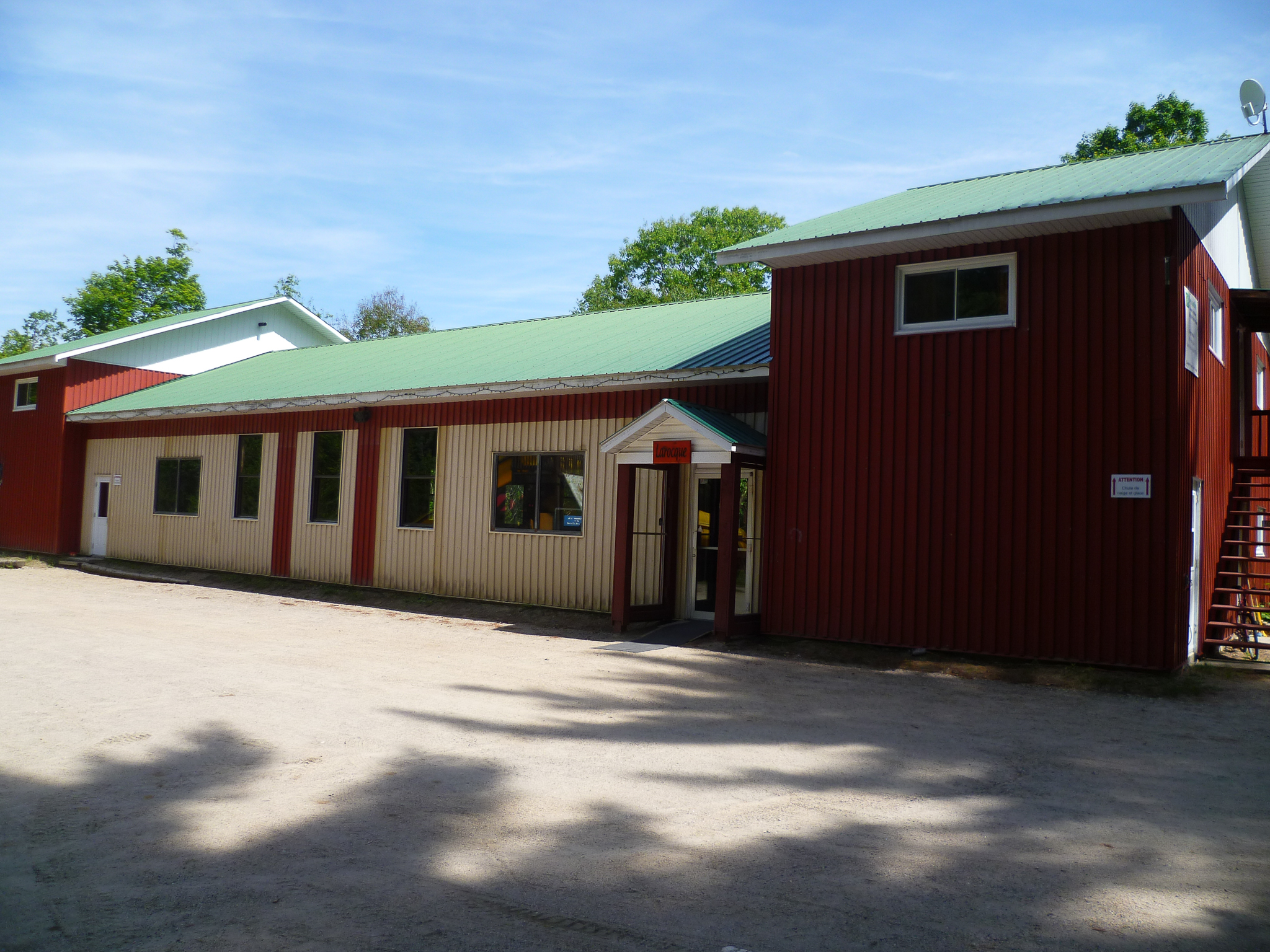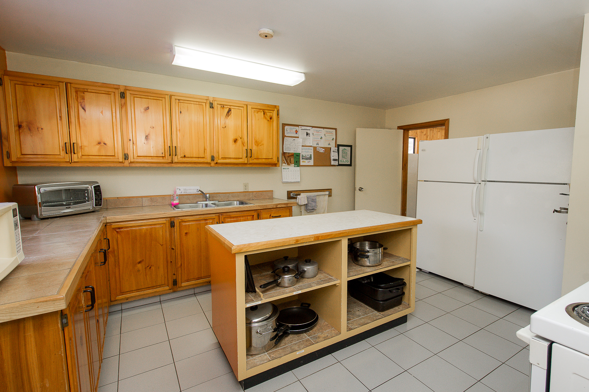 - Grande salle style gymnase de 35 par 70 pieds, muni d’un poêle à bois, peut servir de salle à manger, d’aire de séjour et de jeux ou de salle de conférence.