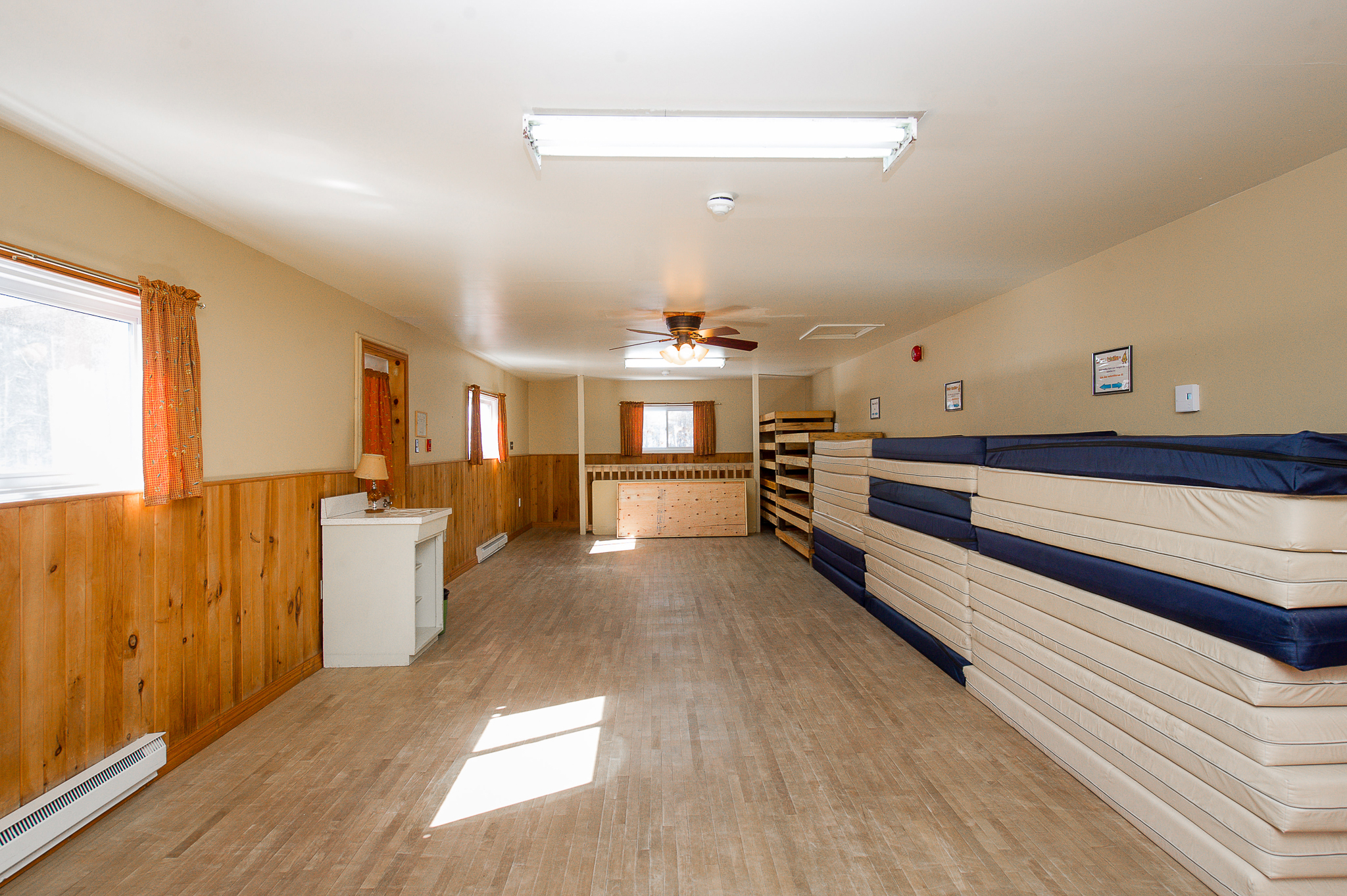 - 2 dortoirs de 15 par 40 pieds – matelas au sol, bases de lit en bois disponibles