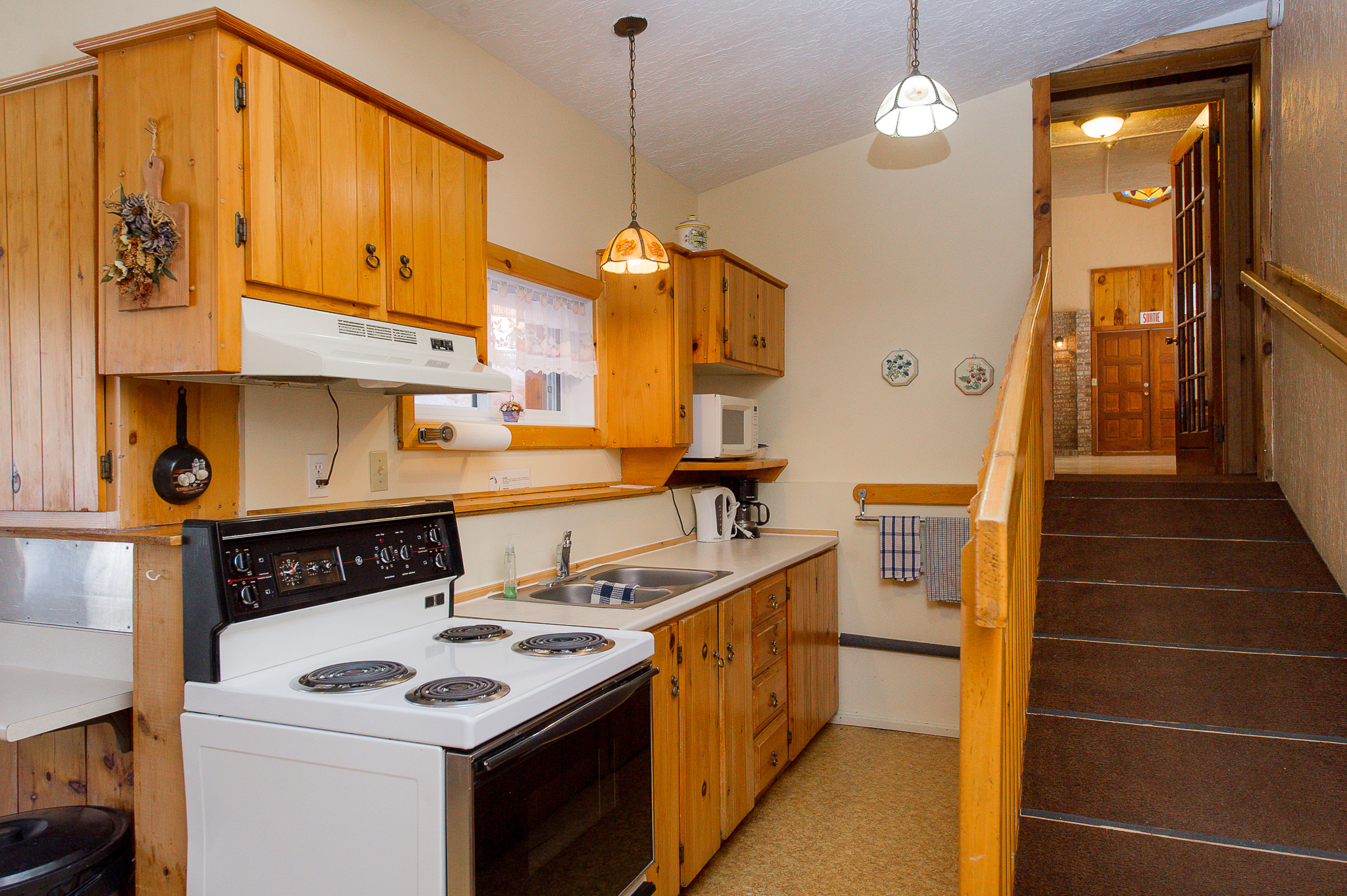 • Le chalet est muni d’une cuisine équipée : 1 cuisinière, 1 réfrigérateur, micro-ondes, petits appareils électriques, vaisselles, ustensiles etc.